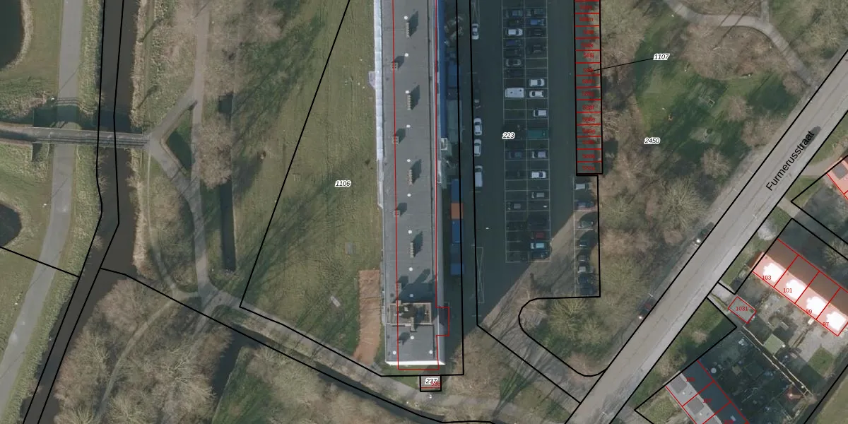 Het perceel waarop Furmerusstraat 548 staat heeft een oppervlakte van 3790 m². Dit is een zeer groot perceel. De perceeloppervlakte wordt geregistreerd door het Kadaster. Gedetailleerde informatie over de maten van dit perceel kunt u vinden in het rapport Kadastrale kaart met maatvoering van Furmerusstraat 548.