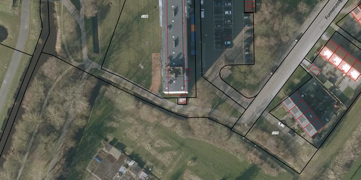 Het perceel waarop Furmerusstraat 584 staat heeft een oppervlakte van 3790 m². Dit is een zeer groot perceel. De perceeloppervlakte wordt geregistreerd door het Kadaster. Gedetailleerde informatie over de maten van dit perceel kunt u vinden in het rapport Kadastrale kaart met maatvoering van Furmerusstraat 584.