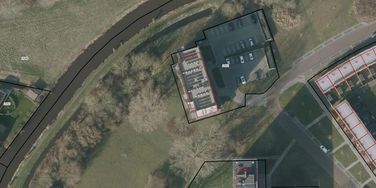 Het adres is gelegen op perceel 2451 in de sectie E en de kadastrale gemeente Sneek. De kadastrale aanduiding is aldus SNE00-E-2451. De gemiddelde perceeloppervlakte in de kadastrale gemeente Sneek is 2093,24 m². Dit perceel is met zijn 2205 m² dus groter dan gemiddeld. Het grootste perceel in de kadastrale gemeente is 61,3 ha. Het kleinste perceel heeft een oppervlakte van 0 m². Op het perceel liggen in totaal 24 adressen. De huidige grenzen van het perceel zijn digitaal in de Basisregistratie Kadaster (BRK) geregistreerd op 17-05-2024.
