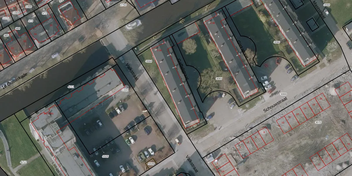 Het perceel waarop Gaffelstraat 20 staat heeft een oppervlakte van 900 m². Dit is een groot perceel. De perceeloppervlakte wordt geregistreerd door het Kadaster. Gedetailleerde informatie over de maten van dit perceel kunt u vinden in het rapport Kadastrale kaart met maatvoering van Gaffelstraat 20.