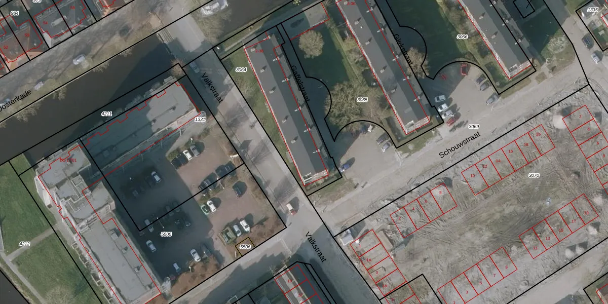 Het adres is gelegen op perceel 3064 in de sectie D en de kadastrale gemeente Sneek. De kadastrale aanduiding is aldus SNE00-D-3064. De gemiddelde perceelgrootte in Sneek is 2093,37 m². Dit perceel is kleiner: de perceeloppervlakte bedraagt 900 m². Het kleinste perceel in de kadastrale gemeente is 0 m² groot. De grootste perceeloppervlakte is 61,3 ha. Er zijn 18 adressen aanwezig op het perceel. De huidige grenzen van het perceel zijn digitaal in de Basisregistratie Kadaster (BRK) geregistreerd op 24-05-2007.