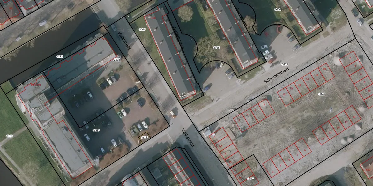 Het perceel waarop Gaffelstraat 36 staat heeft een oppervlakte van 900 m². Dit is een groot perceel. De perceeloppervlakte wordt geregistreerd door het Kadaster. Gedetailleerde informatie over de maten van dit perceel kunt u vinden in het rapport Kadastrale kaart met maatvoering van Gaffelstraat 36.