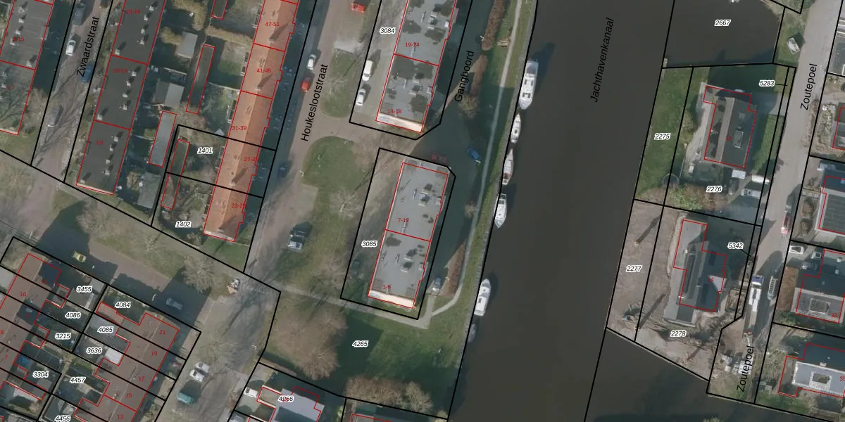 Gangboord 10 is gelegen op kadastraal perceel SNE00D3085. Deze kadastrale aanduiding is uniek en wordt gebruikt door het Kadaster om eigendomsrechten en andere zakelijke rechten vast te leggen. Het perceel maakt onderdeel uit van de kadastrale gemeente Sneek.