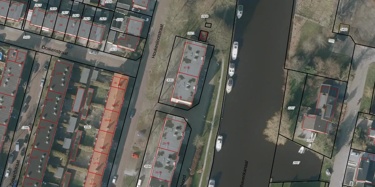 Gangboord 34 is gelegen op kadastraal perceel SNE00D3083. Deze kadastrale aanduiding is uniek en wordt gebruikt door het Kadaster om eigendomsrechten en andere zakelijke rechten vast te leggen. Het perceel maakt onderdeel uit van de kadastrale gemeente Sneek.