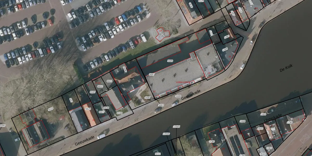 Geeuwkade 12-016 is gelegen op kadastraal perceel SNE00A5689. Deze kadastrale aanduiding is uniek en wordt gebruikt door het Kadaster om eigendomsrechten en andere zakelijke rechten vast te leggen. Het perceel maakt onderdeel uit van de kadastrale gemeente Sneek.