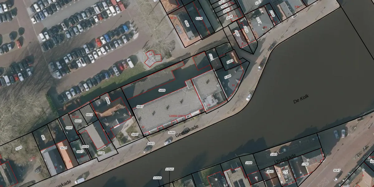 Geeuwkade 12-013 is gelegen op kadastraal perceel SNE00A5689. Deze kadastrale aanduiding is uniek en wordt gebruikt door het Kadaster om eigendomsrechten en andere zakelijke rechten vast te leggen. Het perceel maakt onderdeel uit van de kadastrale gemeente Sneek.
