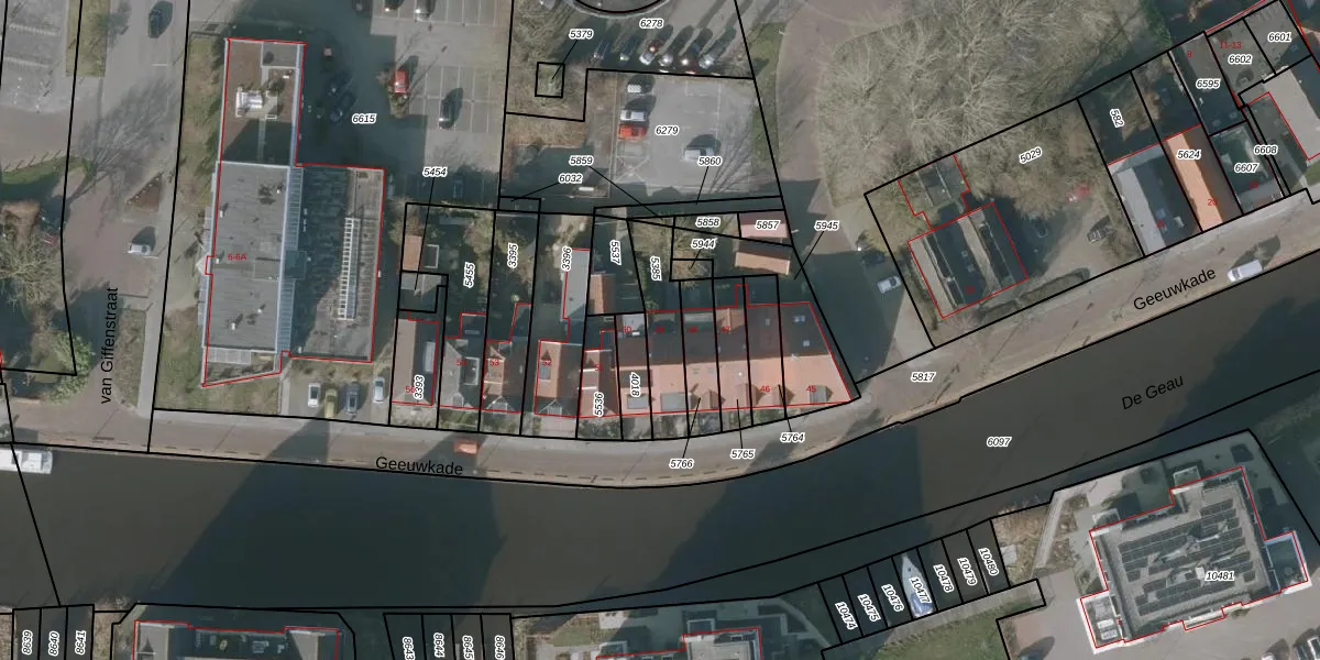 Geeuwkade 49 is gelegen op kadastraal perceel SNE00A5385. Deze kadastrale aanduiding is uniek en wordt gebruikt door het Kadaster om eigendomsrechten en andere zakelijke rechten vast te leggen. Het perceel maakt onderdeel uit van de kadastrale gemeente Sneek.