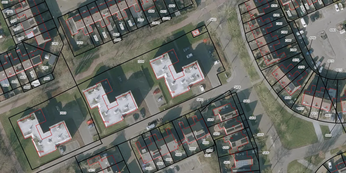Gele Lis 10 is gelegen op kadastraal perceel SNE00C7004. Deze kadastrale aanduiding is uniek en wordt gebruikt door het Kadaster om eigendomsrechten en andere zakelijke rechten vast te leggen. Het perceel maakt onderdeel uit van de kadastrale gemeente Sneek.