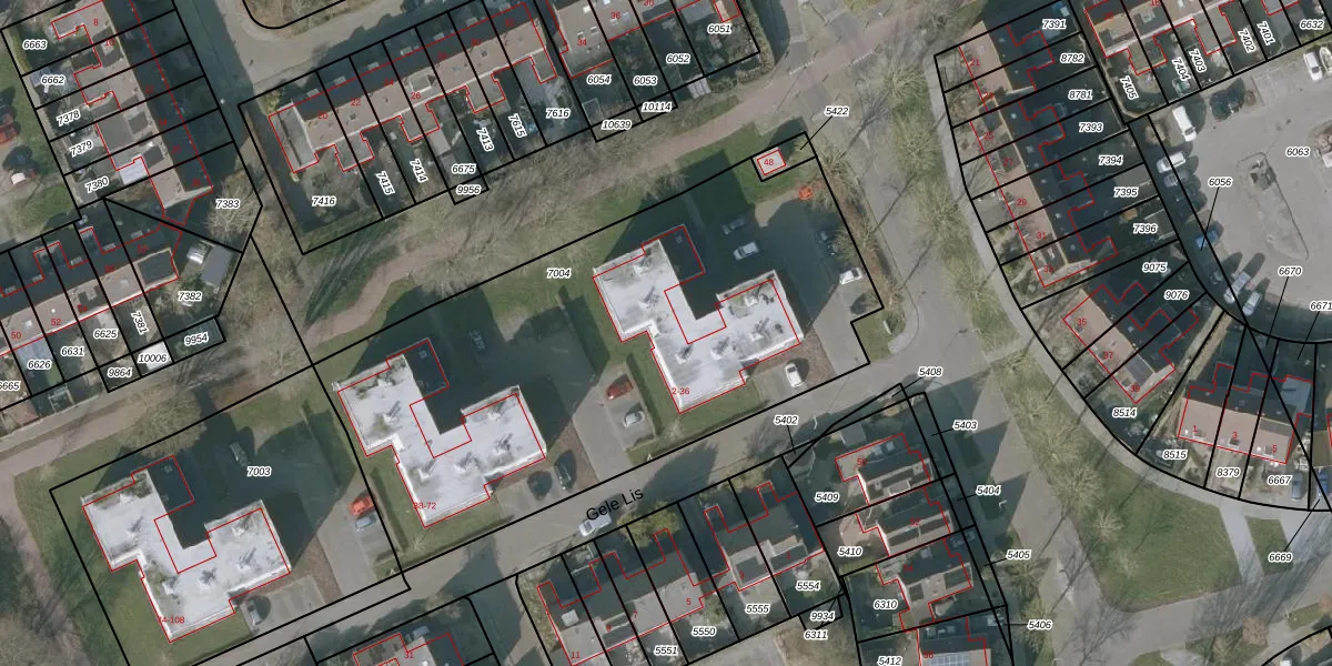 Het perceel waarop Gele Lis 22 staat heeft een oppervlakte van 2770 m². Dit is een zeer groot perceel. De perceeloppervlakte wordt geregistreerd door het Kadaster. Gedetailleerde informatie over de maten van dit perceel kunt u vinden in het rapport Kadastrale kaart met maatvoering van Gele Lis 22.