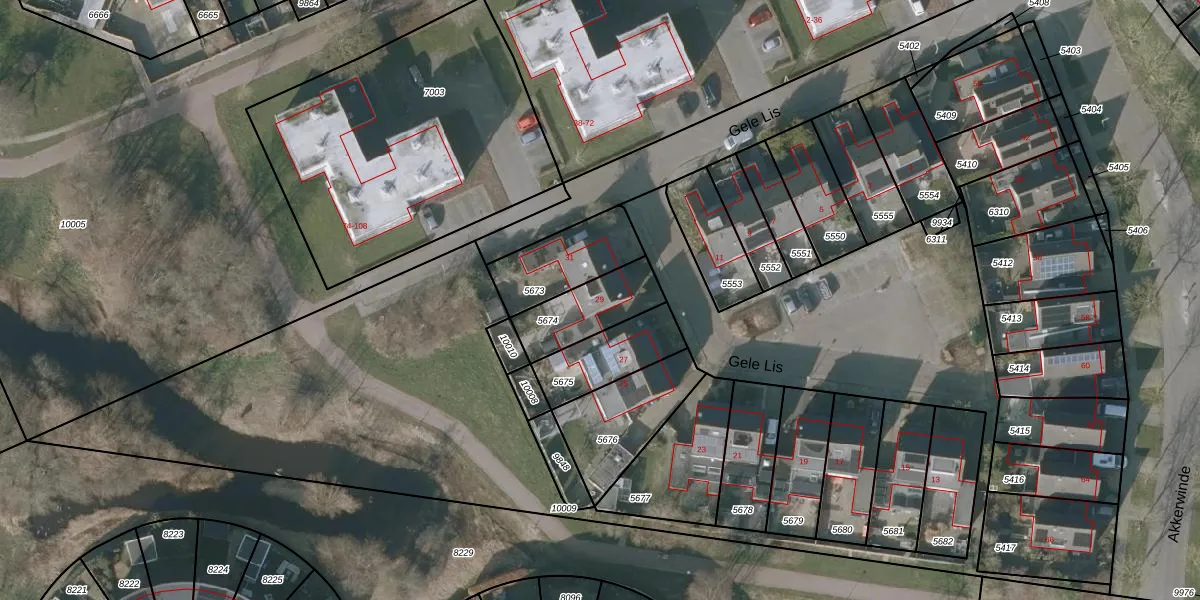 Gele Lis 29 is gelegen op kadastraal perceel SNE00C5674. Deze kadastrale aanduiding is uniek en wordt gebruikt door het Kadaster om eigendomsrechten en andere zakelijke rechten vast te leggen. Het perceel maakt onderdeel uit van de kadastrale gemeente Sneek.