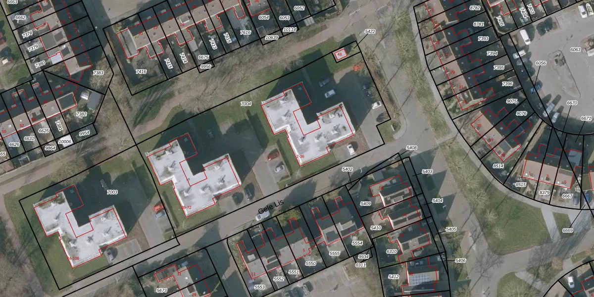 Het perceel waarop Gele Lis 8 staat heeft een oppervlakte van 2770 m². Dit is een zeer groot perceel. De perceeloppervlakte wordt geregistreerd door het Kadaster. Gedetailleerde informatie over de maten van dit perceel kunt u vinden in het rapport Kadastrale kaart met maatvoering van Gele Lis 8.