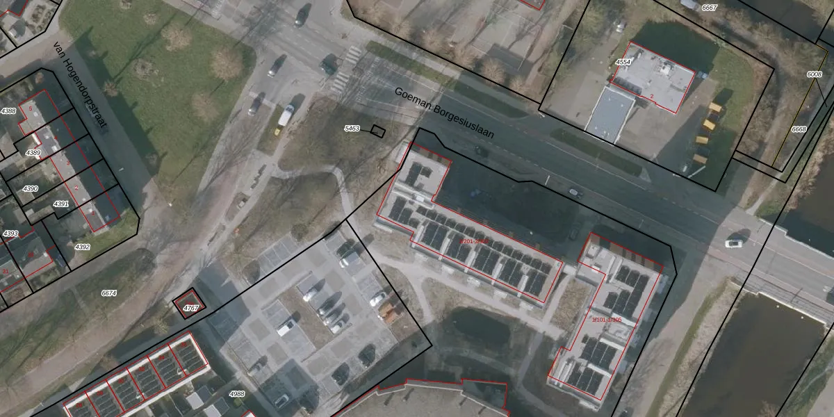 Het perceel waarop Goeman Borgesiuslaan 3-102 staat heeft een oppervlakte van 1,1 ha. Dit is een zeer groot perceel. De perceeloppervlakte wordt geregistreerd door het Kadaster. Gedetailleerde informatie over de maten van dit perceel kunt u vinden in het rapport Kadastrale kaart met maatvoering van Goeman Borgesiuslaan 3-102.