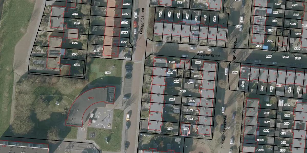 Gonggrijpstraat 45 is gelegen op kadastraal perceel SNE00C8960. Deze kadastrale aanduiding is uniek en wordt gebruikt door het Kadaster om eigendomsrechten en andere zakelijke rechten vast te leggen. Het perceel maakt onderdeel uit van de kadastrale gemeente Sneek.