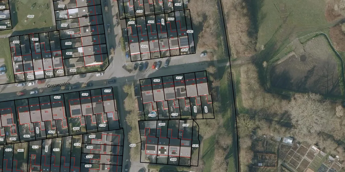 Het perceel waarop Gossepalen 103 staat heeft een oppervlakte van 166 m². Dit is een middelgroot perceel. De perceeloppervlakte wordt geregistreerd door het Kadaster. Gedetailleerde informatie over de maten van dit perceel kunt u vinden in het rapport Kadastrale kaart met maatvoering van Gossepalen 103.