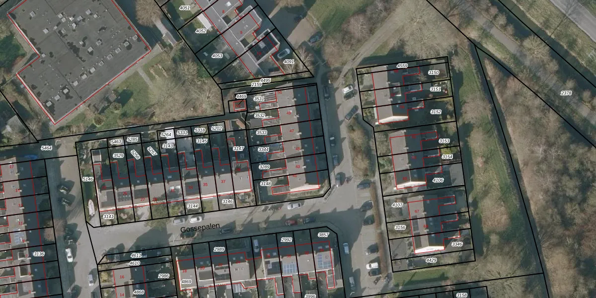 Gossepalen 45 is gelegen op kadastraal perceel SNE00D3344. Deze kadastrale aanduiding is uniek en wordt gebruikt door het Kadaster om eigendomsrechten en andere zakelijke rechten vast te leggen. Het perceel maakt onderdeel uit van de kadastrale gemeente Sneek.