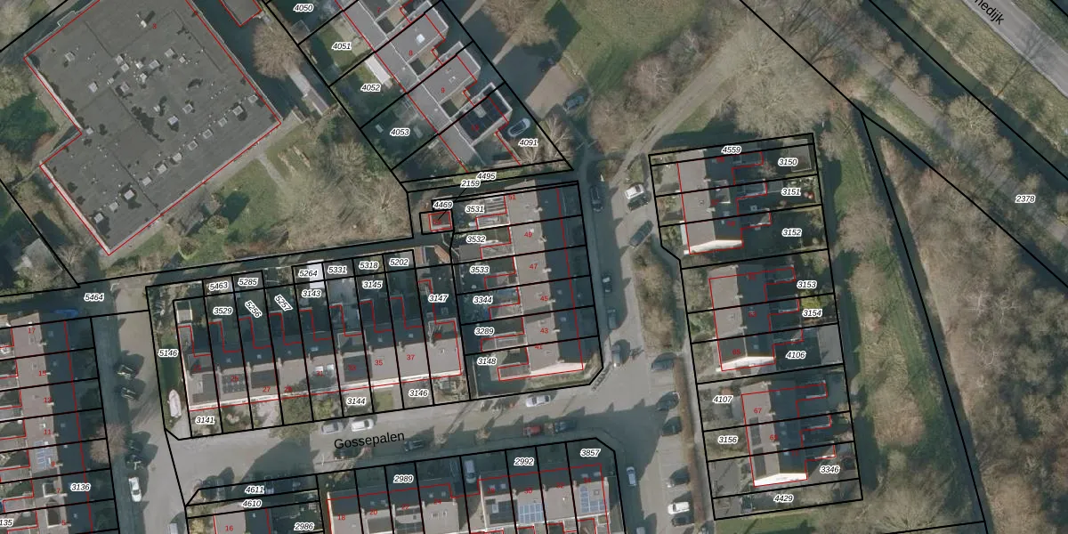 Gossepalen 47 is gelegen op kadastraal perceel SNE00D3533. Deze kadastrale aanduiding is uniek en wordt gebruikt door het Kadaster om eigendomsrechten en andere zakelijke rechten vast te leggen. Het perceel maakt onderdeel uit van de kadastrale gemeente Sneek.