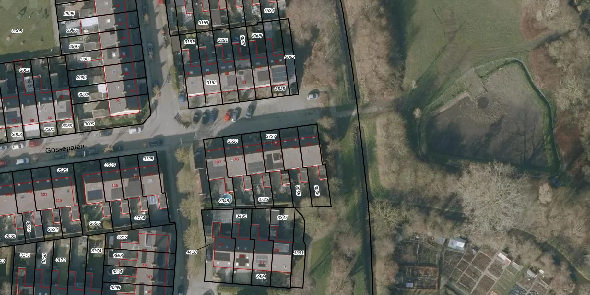 Het perceel waarop Gossepalen 99 staat heeft een oppervlakte van 175 m². Dit is een middelgroot perceel. De perceeloppervlakte wordt geregistreerd door het Kadaster. Gedetailleerde informatie over de maten van dit perceel kunt u vinden in het rapport Kadastrale kaart met maatvoering van Gossepalen 99.