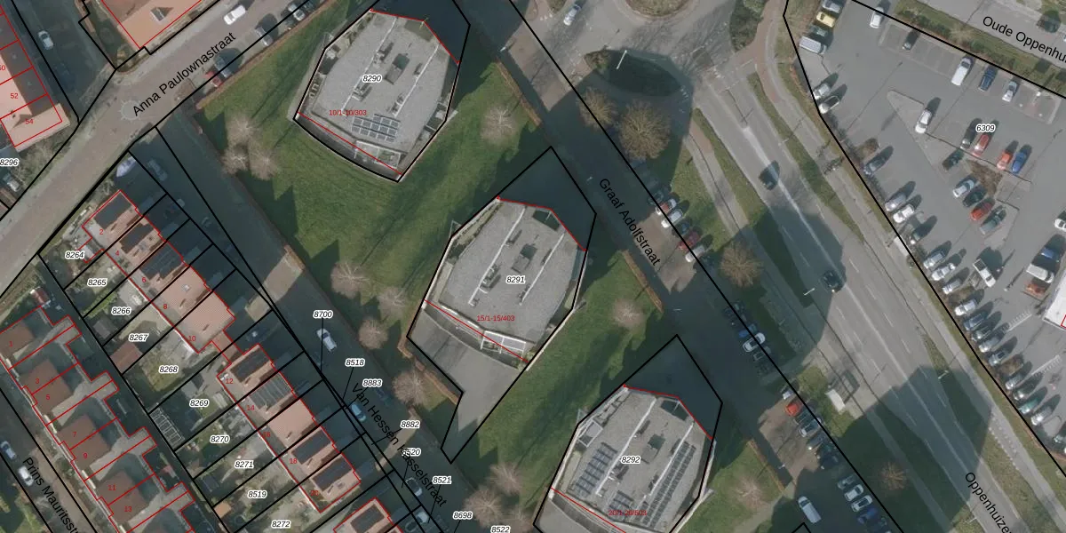 Het perceel waarop Graaf Adolfstraat 15-304 staat heeft een oppervlakte van 1014 m². Dit is een zeer groot perceel. De perceeloppervlakte wordt geregistreerd door het Kadaster. Gedetailleerde informatie over de maten van dit perceel kunt u vinden in het rapport Kadastrale kaart met maatvoering van Graaf Adolfstraat 15-304.