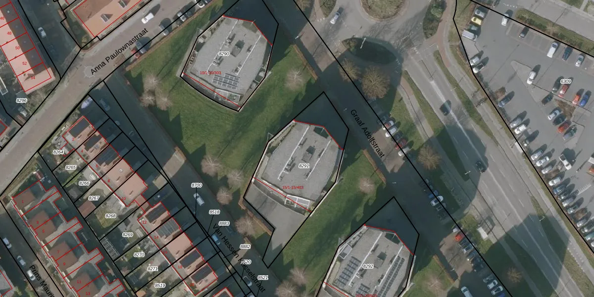Graaf Adolfstraat 15-302 is gelegen op kadastraal perceel SNE00C8291. Deze kadastrale aanduiding is uniek en wordt gebruikt door het Kadaster om eigendomsrechten en andere zakelijke rechten vast te leggen. Het perceel maakt onderdeel uit van de kadastrale gemeente Sneek.
