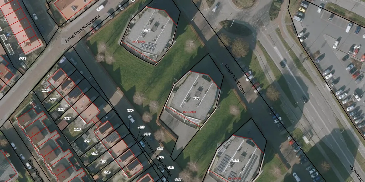Het perceel waarop Graaf Adolfstraat 15-201 staat heeft een oppervlakte van 1014 m². Dit is een zeer groot perceel. De perceeloppervlakte wordt geregistreerd door het Kadaster. Gedetailleerde informatie over de maten van dit perceel kunt u vinden in het rapport Kadastrale kaart met maatvoering van Graaf Adolfstraat 15-201.