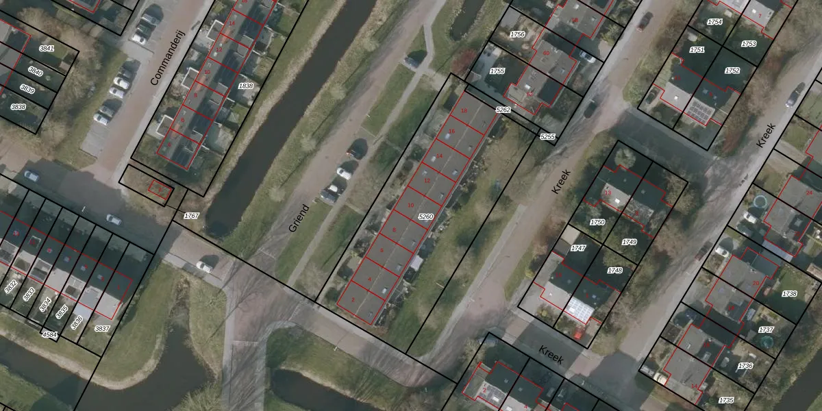 Griend 10 is gelegen op kadastraal perceel SNE00D5260. Deze kadastrale aanduiding is uniek en wordt gebruikt door het Kadaster om eigendomsrechten en andere zakelijke rechten vast te leggen. Het perceel maakt onderdeel uit van de kadastrale gemeente Sneek.