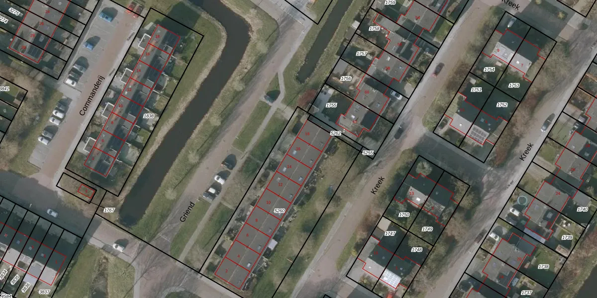 Griend 16 is gelegen op kadastraal perceel SNE00D5260. Deze kadastrale aanduiding is uniek en wordt gebruikt door het Kadaster om eigendomsrechten en andere zakelijke rechten vast te leggen. Het perceel maakt onderdeel uit van de kadastrale gemeente Sneek.