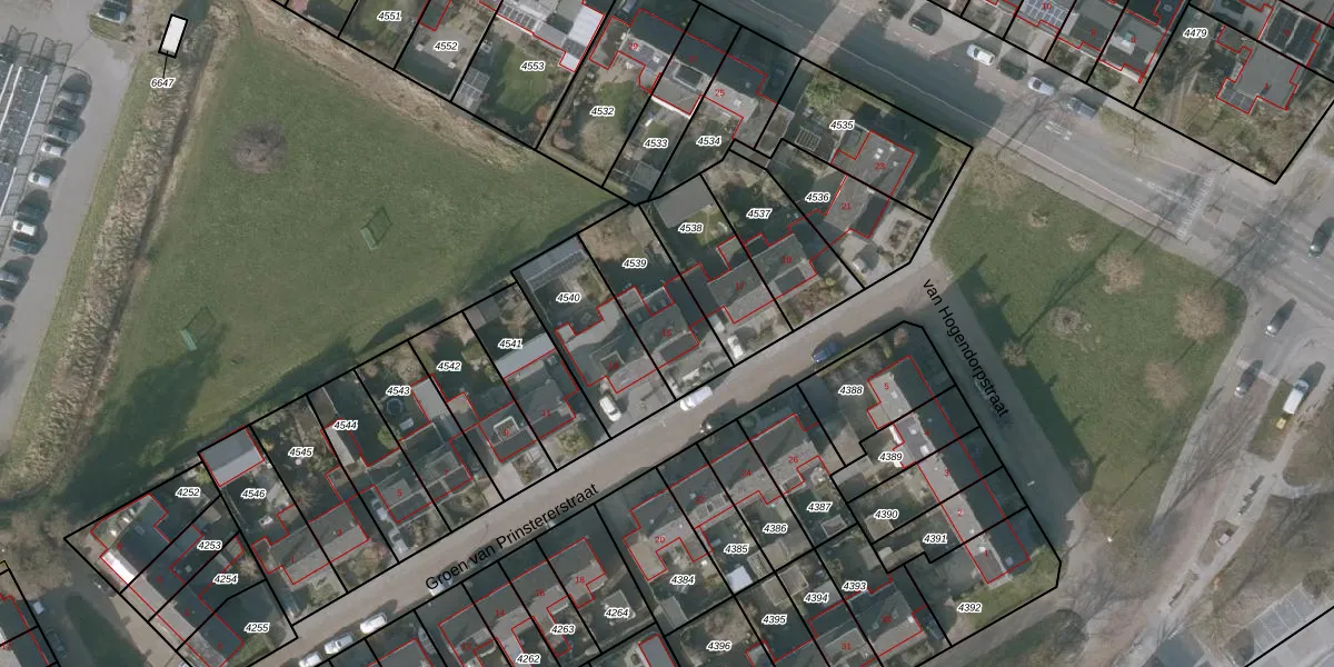 Het perceel waarop Groen van Prinstererstraat 15 staat heeft een oppervlakte van 294 m². Dit is een middelgroot perceel. De perceeloppervlakte wordt geregistreerd door het Kadaster. Gedetailleerde informatie over de maten van dit perceel kunt u vinden in het rapport Kadastrale kaart met maatvoering van Groen van Prinstererstraat 15.