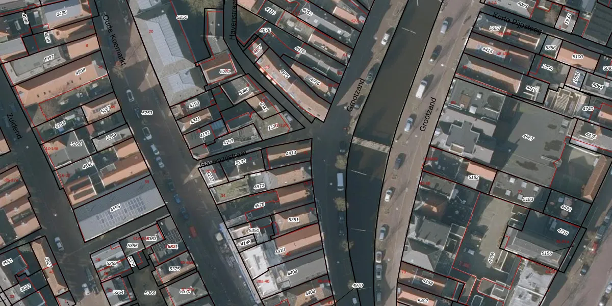 Gebruik de zoekbalk of klik op een perceel voor informatie over de adressen binnen dit perceel.