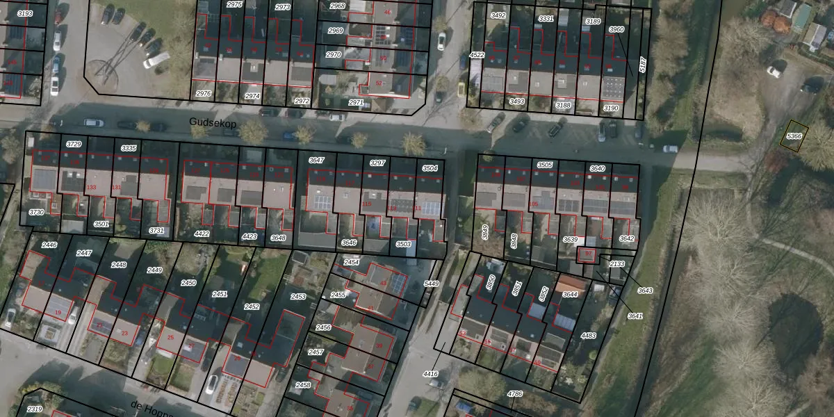 Gudsekop 111 is gelegen op kadastraal perceel SNE00D3504. Deze kadastrale aanduiding is uniek en wordt gebruikt door het Kadaster om eigendomsrechten en andere zakelijke rechten vast te leggen. Het perceel maakt onderdeel uit van de kadastrale gemeente Sneek.