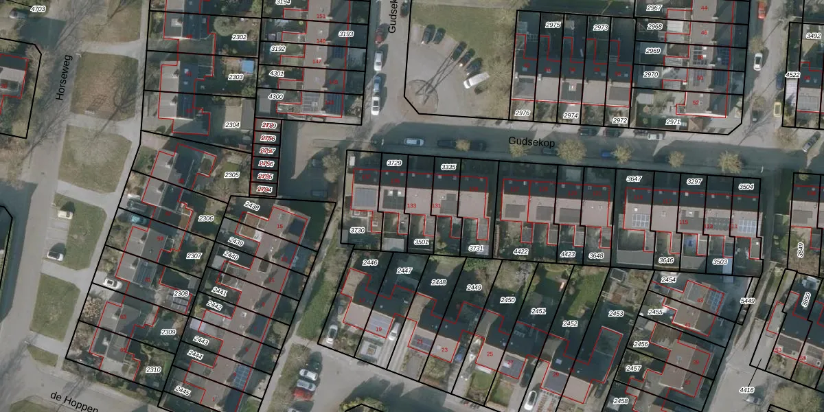Het perceel waarop Gudsekop 133 staat heeft een oppervlakte van 153 m². Dit is een middelgroot perceel. De perceeloppervlakte wordt geregistreerd door het Kadaster. Gedetailleerde informatie over de maten van dit perceel kunt u vinden in het rapport Kadastrale kaart met maatvoering van Gudsekop 133.