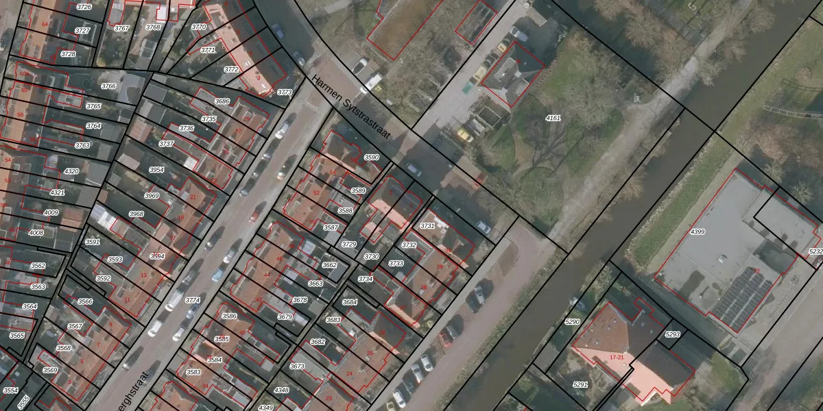 Harmen Sytstrastraat 1 is gelegen op kadastraal perceel SNE00A3730. Deze kadastrale aanduiding is uniek en wordt gebruikt door het Kadaster om eigendomsrechten en andere zakelijke rechten vast te leggen. Het perceel maakt onderdeel uit van de kadastrale gemeente Sneek.