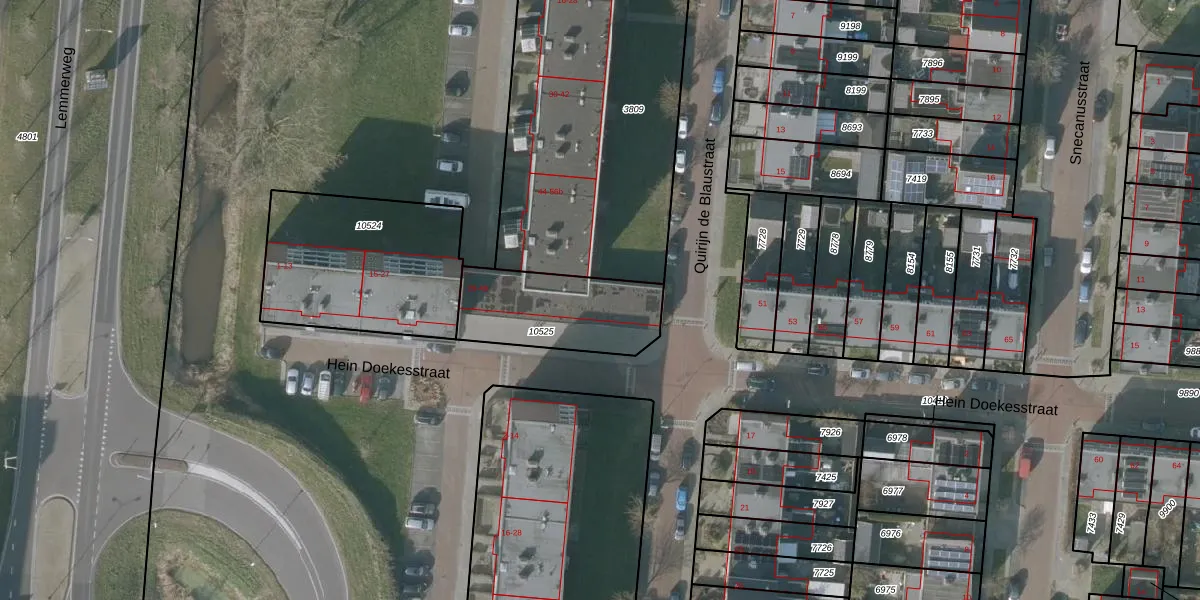 Hein Doekesstraat 45 is gelegen op kadastraal perceel SNE00C10525. Deze kadastrale aanduiding is uniek en wordt gebruikt door het Kadaster om eigendomsrechten en andere zakelijke rechten vast te leggen. Het perceel maakt onderdeel uit van de kadastrale gemeente Sneek.