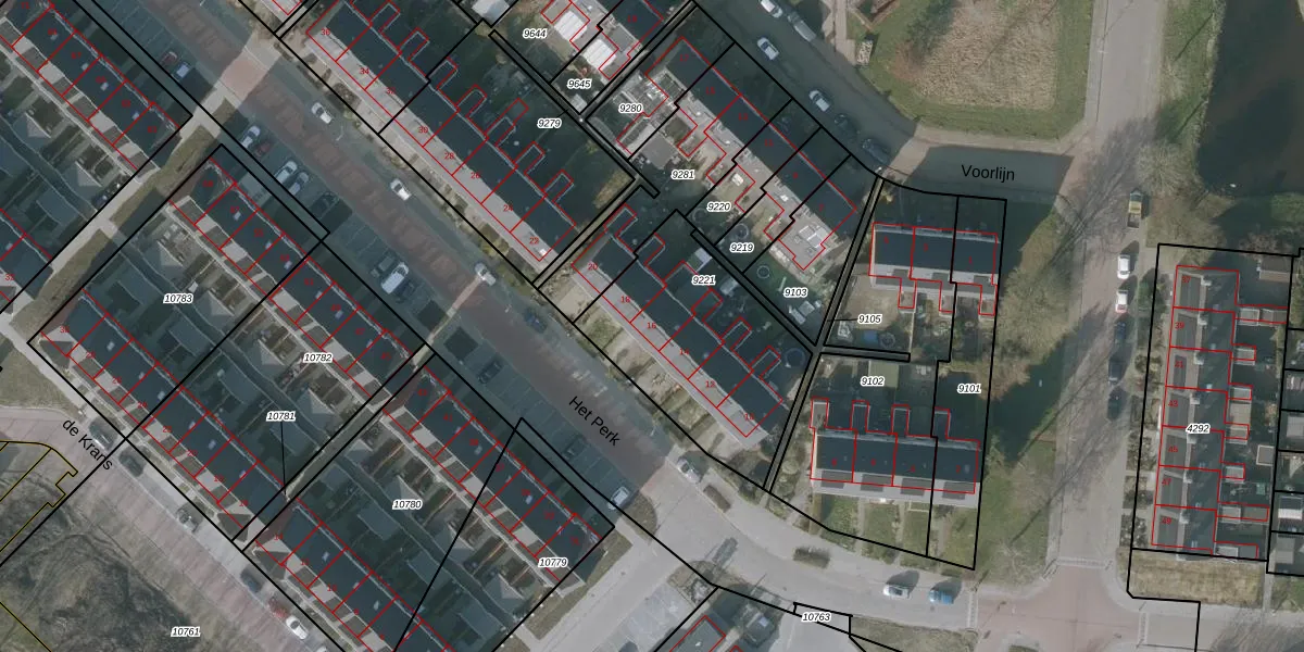 Het perceel waarop Het Perk 16 staat heeft een oppervlakte van 771 m². Dit is een groot perceel. De perceeloppervlakte wordt geregistreerd door het Kadaster. Gedetailleerde informatie over de maten van dit perceel kunt u vinden in het rapport Kadastrale kaart met maatvoering van Het Perk 16.