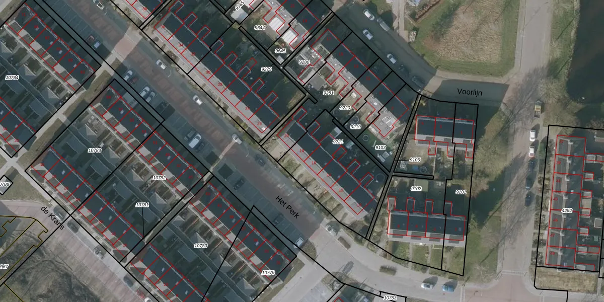 Het perceel waarop Het Perk 18 staat heeft een oppervlakte van 771 m². Dit is een groot perceel. De perceeloppervlakte wordt geregistreerd door het Kadaster. Gedetailleerde informatie over de maten van dit perceel kunt u vinden in het rapport Kadastrale kaart met maatvoering van Het Perk 18.