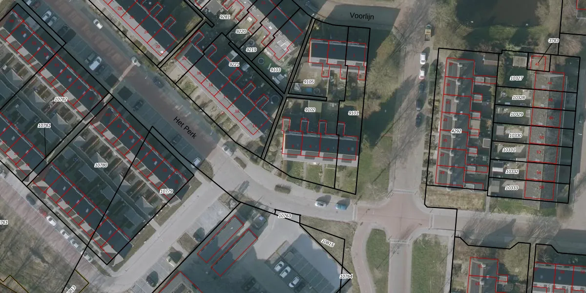 Het perceel waarop Het Perk 8 staat heeft een oppervlakte van 988 m². Dit is een groot perceel. De perceeloppervlakte wordt geregistreerd door het Kadaster. Gedetailleerde informatie over de maten van dit perceel kunt u vinden in het rapport Kadastrale kaart met maatvoering van Het Perk 8.