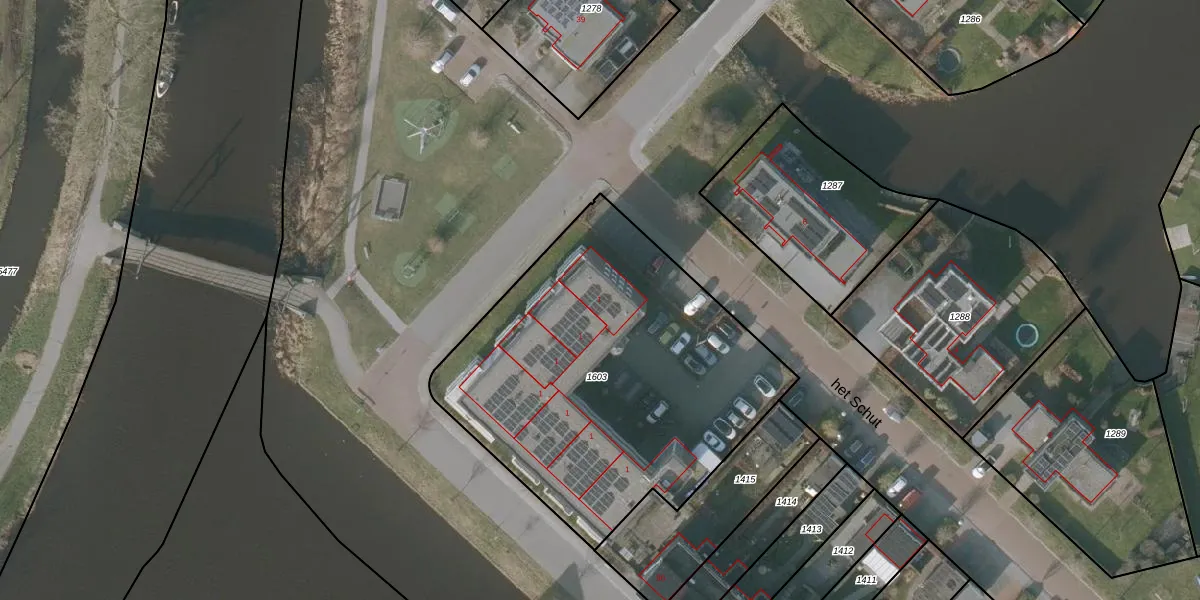 het Schut 1-107 is gelegen op kadastraal perceel SNE00F1603. Deze kadastrale aanduiding is uniek en wordt gebruikt door het Kadaster om eigendomsrechten en andere zakelijke rechten vast te leggen. Het perceel maakt onderdeel uit van de kadastrale gemeente Sneek.