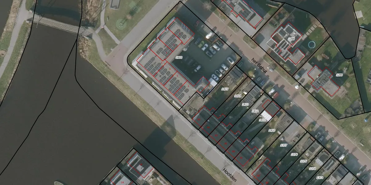 het Schut 1-201 is gelegen op kadastraal perceel SNE00F1603. Deze kadastrale aanduiding is uniek en wordt gebruikt door het Kadaster om eigendomsrechten en andere zakelijke rechten vast te leggen. Het perceel maakt onderdeel uit van de kadastrale gemeente Sneek.