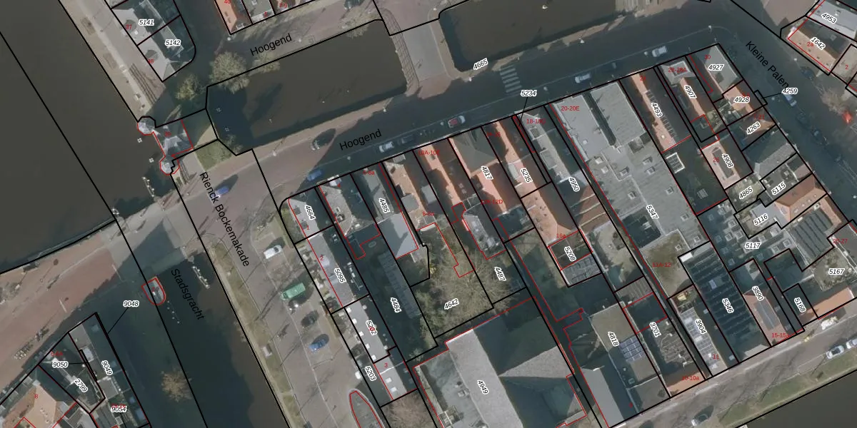 Hoogend 8 is gelegen op kadastraal perceel SNE00B4642. Deze kadastrale aanduiding is uniek en wordt gebruikt door het Kadaster om eigendomsrechten en andere zakelijke rechten vast te leggen. Het perceel maakt onderdeel uit van de kadastrale gemeente Sneek.