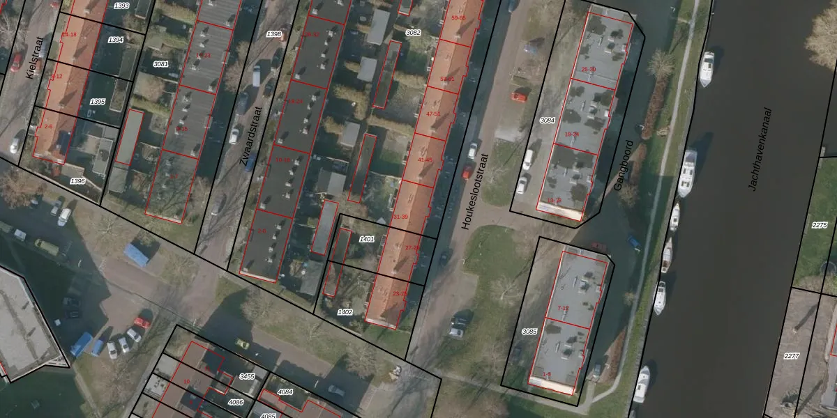 Houkeslootstraat 39 is gelegen op kadastraal perceel SNE00D3082. Deze kadastrale aanduiding is uniek en wordt gebruikt door het Kadaster om eigendomsrechten en andere zakelijke rechten vast te leggen. Het perceel maakt onderdeel uit van de kadastrale gemeente Sneek.