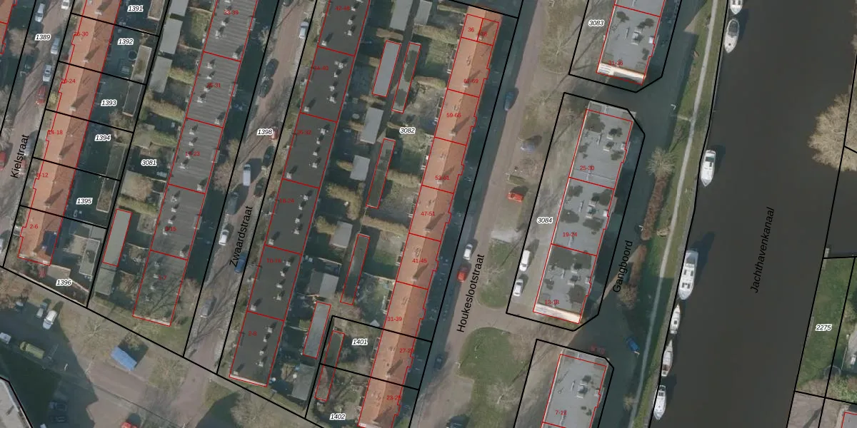 Houkeslootstraat 47 is gelegen op kadastraal perceel SNE00D3082. Deze kadastrale aanduiding is uniek en wordt gebruikt door het Kadaster om eigendomsrechten en andere zakelijke rechten vast te leggen. Het perceel maakt onderdeel uit van de kadastrale gemeente Sneek.