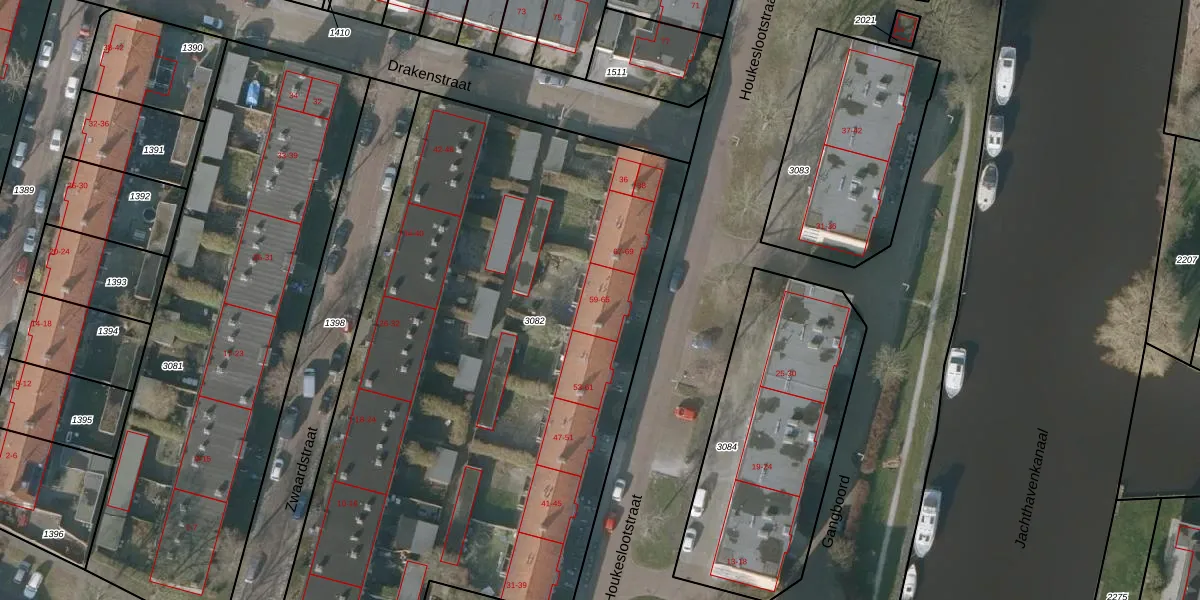 Houkeslootstraat 59 is gelegen op kadastraal perceel SNE00D3082. Deze kadastrale aanduiding is uniek en wordt gebruikt door het Kadaster om eigendomsrechten en andere zakelijke rechten vast te leggen. Het perceel maakt onderdeel uit van de kadastrale gemeente Sneek.