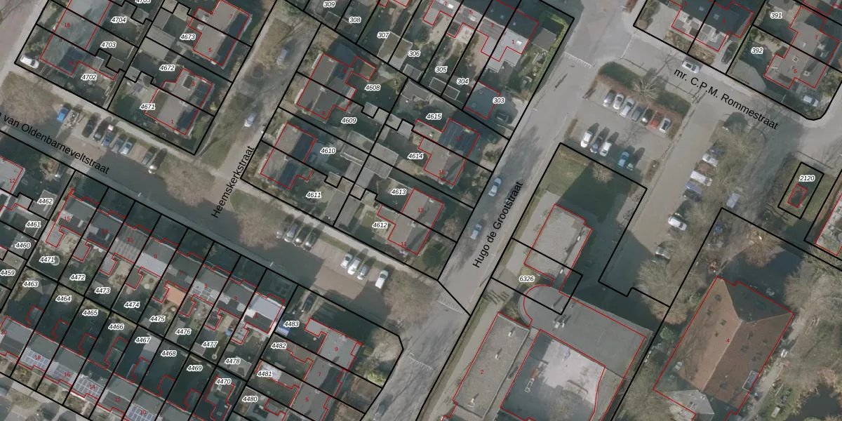 Hugo de Grootstraat 13 is gelegen op kadastraal perceel SNE00A4613. Deze kadastrale aanduiding is uniek en wordt gebruikt door het Kadaster om eigendomsrechten en andere zakelijke rechten vast te leggen. Het perceel maakt onderdeel uit van de kadastrale gemeente Sneek.