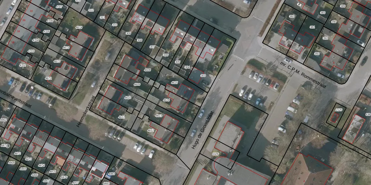 Hugo de Grootstraat 17 is gelegen op kadastraal perceel SNE00A4615. Deze kadastrale aanduiding is uniek en wordt gebruikt door het Kadaster om eigendomsrechten en andere zakelijke rechten vast te leggen. Het perceel maakt onderdeel uit van de kadastrale gemeente Sneek.