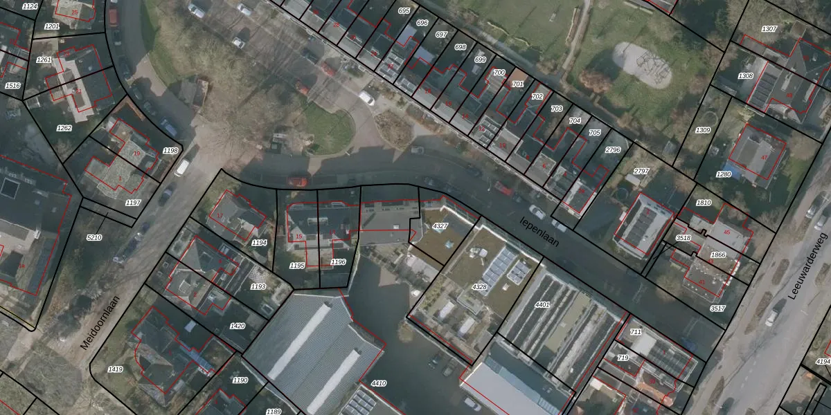 Iepenlaan 9 is gelegen op kadastraal perceel SNE00D4410. Deze kadastrale aanduiding is uniek en wordt gebruikt door het Kadaster om eigendomsrechten en andere zakelijke rechten vast te leggen. Het perceel maakt onderdeel uit van de kadastrale gemeente Sneek.