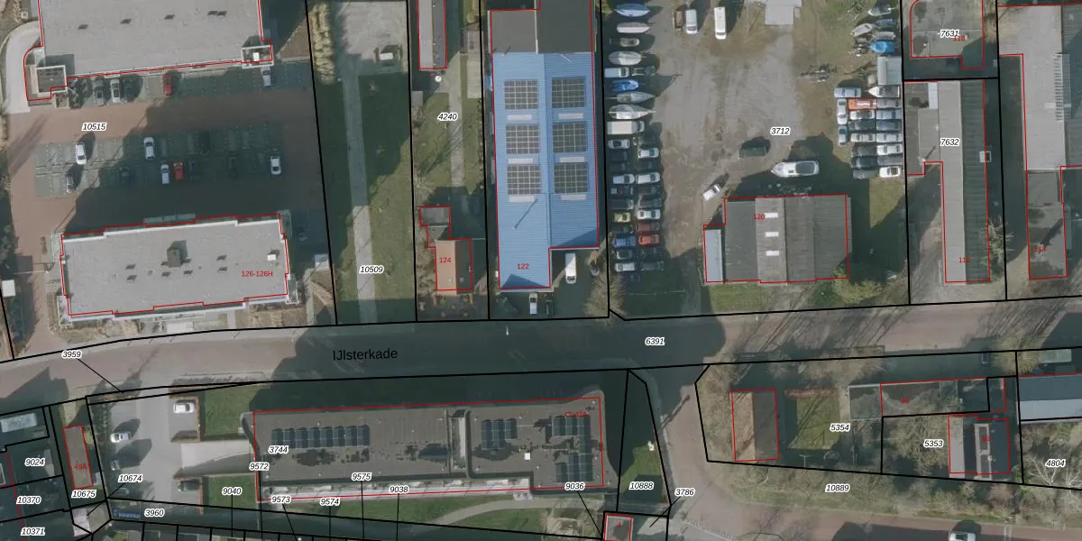 Het perceel waarop IJlsterkade 122 staat heeft een oppervlakte van 1545 m². Dit is een zeer groot perceel. De perceeloppervlakte wordt geregistreerd door het Kadaster. Gedetailleerde informatie over de maten van dit perceel kunt u vinden in het rapport Kadastrale kaart met maatvoering van IJlsterkade 122.