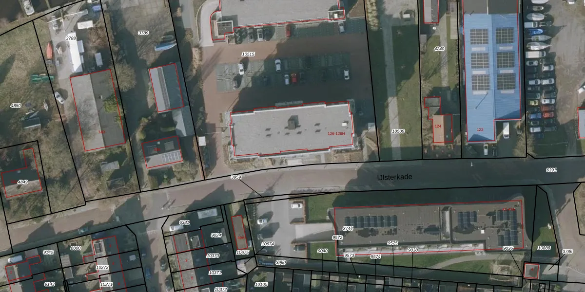 Het perceel waarop IJlsterkade 126 staat heeft een oppervlakte van 4591 m². Dit is een zeer groot perceel. De perceeloppervlakte wordt geregistreerd door het Kadaster. Gedetailleerde informatie over de maten van dit perceel kunt u vinden in het rapport Kadastrale kaart met maatvoering van IJlsterkade 126.