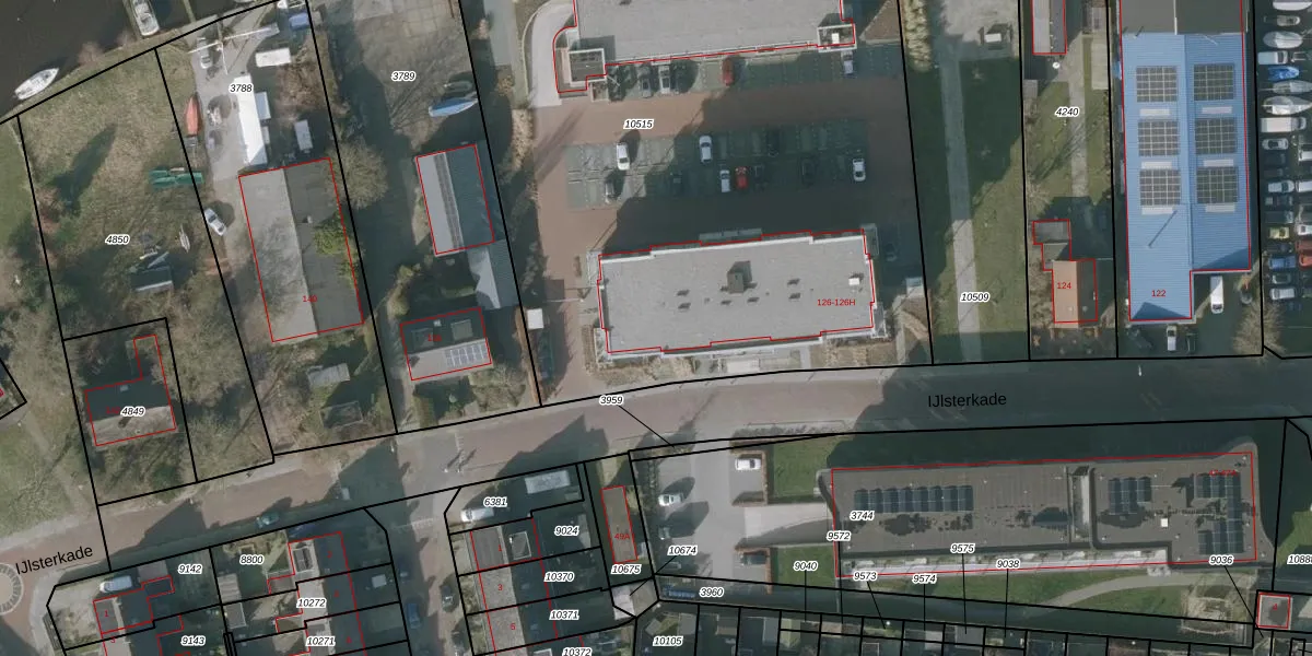 Het perceel waarop IJlsterkade 126-402 staat heeft een oppervlakte van 4591 m². Dit is een zeer groot perceel. De perceeloppervlakte wordt geregistreerd door het Kadaster. Gedetailleerde informatie over de maten van dit perceel kunt u vinden in het rapport Kadastrale kaart met maatvoering van IJlsterkade 126-402.