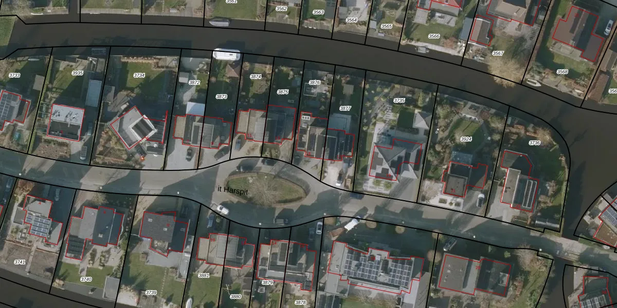 Het perceel waarop it Harspit 15 staat heeft een oppervlakte van 360 m². Dit is een groot perceel. De perceeloppervlakte wordt geregistreerd door het Kadaster. Gedetailleerde informatie over de maten van dit perceel kunt u vinden in het rapport Kadastrale kaart met maatvoering van it Harspit 15.