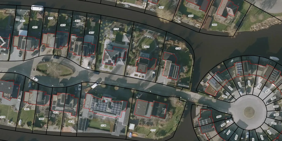 Het perceel waarop it Harspit 21 staat heeft een oppervlakte van 893 m². Dit is een groot perceel. De perceeloppervlakte wordt geregistreerd door het Kadaster. Gedetailleerde informatie over de maten van dit perceel kunt u vinden in het rapport Kadastrale kaart met maatvoering van it Harspit 21.