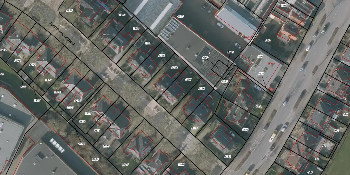 Jachthavenstraat 13 is gelegen op kadastraal perceel SNE00D1187. Deze kadastrale aanduiding is uniek en wordt gebruikt door het Kadaster om eigendomsrechten en andere zakelijke rechten vast te leggen. Het perceel maakt onderdeel uit van de kadastrale gemeente Sneek.